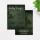 This bold, distinctive card features template space holders where you can add your own logo or graphic to the front, and contact details to the back. The card's background was covered with a grunge-textured, artistic graphic featuring vintage lines and an overlay of leaves in an above tree. The image is a deep, dark green.