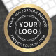 Business thank you stickers with a printed image golden color gradient border (not real foil) and custom logo template. Move and resize the logo with the design tool. Text, font and font colors are customizable. A great way to thank your customers and promote your business at the same time