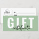 Your Logo Green Minimal Business Gift Certificate. Add your logo to the front to make it your own. This fun and simple gift certificate is designed as a long horizontal card, perfect for corporate brands, small businesses, or individuals like makeup artists, estheticians, hair stylists, and more! The current design features a green, black, and white colour scheme, but you can customise the colours to match your brand’s style. The front displays a chic and professional mix of modern and script typography.