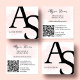 Simple bold black white logo initial hair makeup qr code with a brushed script typography square business card on abstract pink watercolor brushstroke . Add your social media. With an elegant signature script font, all the colours are editable , add your logo.Move the letters to create your logo.