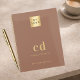 A mocca, brown background, yellow text. Personalise and add your logo, monogram initials, name and a title year 2026 (any year). Your logo both on the front and the back. Space for your website address on the back.