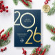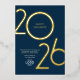 Send a stylish, one-sided holiday greeting that reflects your brand's sophistication with this elegant, customisable corporate holiday card for 2026. Perfect for clients, employees, and business partners, this premium design features bold "2026" gold foil numbers set against a customisable navy-blue background, combining a professional look with a refined, festive touch. Personalise effortlessly by adding your company logo and a thoughtful holiday message, or adjust the background to align with your brand’s colour scheme. With options to select from gold, rose gold, or silver foil, this card offers a unique, branded impression. Designed as an online template, it makes holiday greetings easy, polished, and memorable.