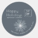 Logo modern watercolor snowflake Happy Holidays Classic Round Sticker
