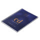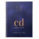 A navy blue background, golden and white text. The blue colour is uneven. Personalise and add your logo, monogram initials, name and a title.