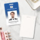 Upload your own logo and photo and make custom name tags and employee id badges for your company. Easy to use template. You can resize the photo, logo and bar code with the design tool. To resize the photo you first need to unmask it. Fonts and colours except the white part of the gradient are customisable.