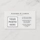 Customisable diy two-sided, front and back business cards with light grey background: the front with your photo and information, the back with the company logo and information. Clean, straightforward template, suitable for companies, businesses, and organisations, big or small.