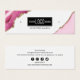 Modern stud or hoop earring display cards featuring a crisp white background with a girly pink & gold agate edges, your business logo, social media icons that can be removed, and your company details.