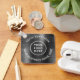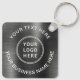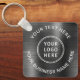 Simple promotional keychain for your business or organisation on a brushed dark grey / silver faux metallic background. Add your logo or QR code and two lines of customised white text, such as your company name, slogan, thank you, or leave blank.