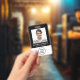 Modern and professional black employee ID badge featuring their photo, name and position, and your business or organisation's logo. On the back, add any additional information and optional QR and bar codes.