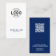Logo QR Code Minimalist White Navy Blue Custom Business Card