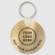 Modern promotional keychain for your company or organisation with a brushed gold faux metal background. Upload your logo, easily create a scannable QR code linked to your website, and add two lines of text, such as your business name, slogan, thank you, or leave blank.