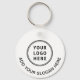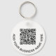 Modern promotional black and white keychain for your company or organisation. Upload your logo, easily create a scannable QR code linked to your website, and add two lines of text, such as your business name, slogan, thank you, or leave blank.