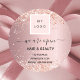 A sticker for reopening your hair and beauty salon, business. A rose gold gradient background and confetti. With the text: We are open. Personalise and add your own business logo and contackt information.
