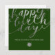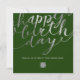 Stylish modern two side print clean glamourous Square Business Happy Birthday Greeting Card featuring simulation of faux silver foil hand lettering script text on a chic forest green background. This colour can be changed to any other. Please note that the silver in this design is a flat colour grey print and is not an actual metallic foil. Perfect combination of elegance and formal professional business luxury with a warm feel. Change the "your logo here" image with your logo or remove it if you want to use it without a logo. Don’t forget to customise the front side and back text as well.