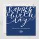 Stylish modern two side print elegant black Square Business Happy Birthday Greeting Card featuring white hand lettering script text on a navy blue background. Perfect combination of elegance and formal business luxury with a warm feel. Change the "your logo here" image with your logo or remove it if you want to use it without a logo. Don’t forget to customise the front side and back text as well.