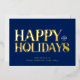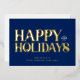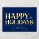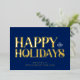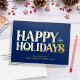 Send elegant bold holiday greetings to clients, employees, and business partners with this simple minimalist corporate Happy Holidays card. Featuring genuine gold foil “Happy Holidays” text on a customisable navy blue background, this design exudes both style and professionalism. Personalise with your custom logo and add your holiday message on both sides. The navy blue background is easily changeable to suit your brand colours, and the gold foil can be switched to rose gold or silver for a unique touch. This card is set as a convenient online template, allowing seamless customisation to create the perfect seasonal message for your office and professional network.