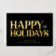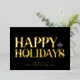 Send elegant bold holiday greetings to clients, employees, and business partners with this simple bold corporate Happy Holidays card. Featuring genuine gold foil “Happy Holidays” text on a customisable elegant black background, this design exudes both style and professionalism. Personalise with your custom logo and add your holiday message on both sides. The navy blue background is easily changeable to suit your brand colours, and the gold foil can be switched to rose gold or silver for a unique touch. This card is set as a convenient online template, allowing seamless customisation to create the perfect seasonal message for your office and professional network.