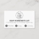 Make your logo stand out on this business card for fragranced soap! Simply replace this logo image for your own and add your own fragrances and ingredients to the back of this card.