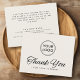 Elegant, light tan brown business thank you card with custom logo or other image on the front and custom text, company contact information and social media icons on the back. You can change background colour, fonts and font colours with the design tool