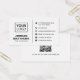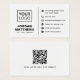 White or custom colour, modern, professional business card design with template fields for name, company name/title, logo (photo or other graphic), QR code and contact information including social media icons. Change background colour, move and resize elements with the customisation tool.