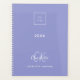 A feminine violet, lavender coloured background and white text. Personalise and add your logo, first name, monogram initials, full name and a year. (any year). Your logo both on the front and the back. Space for your website address on the back.
