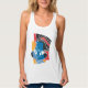 I had purchased the flowy tank for another graphic so I knew it would fit. Nice light fabric, perfect for summer, doesn't cling. The white can be a little shear, you can definitely see your bra through it so if that bothers you, go for a darker color. I have worn this out during the day, and at the gym. The colors are washed out. The blue is more of a pale light blue as compared with the graphic displayed on the website. I would have liked the colors a little more saturated but still nice.