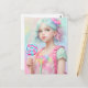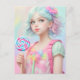 Sending a burst of whimsy with this postcard featuring AI-generated portrait art – a delightful girl holding a lollipop in dreamy pastel hues! This enchanting creation captures the essence of sugary delights and imaginative charm.