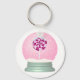 A pink and white, snow capped lollypop mounted in the snow of this snow globe. Surrounded by snowflakes in a pink and green snowglobe. Very cute, unique and whimsical.