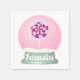A snow capped pink and white swirl stripe lollypop mounted in the snow of this snow globe. Very cute and unique.Personalise if you wish.