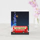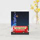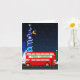 This festive illustration features Big Ben adorned with a snowflake garland, one of Santa's reindeer doing a flyby, while Santa and Rudolph take a tour in a red double-decker bus.