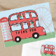 These London birthday party thank you cards are perfect for kids birthday parties! With a fun hand illustrated double decker party bus, Ferris wheel and telephone booth graphics these are one of a kind.