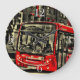 A cool London icon rolls past the shopping district illustrated in the old lithographic style. Hop on your favourite city bus and enjoy the streets of London.
