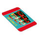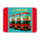 Fridge magnet with horizontal design showing a photo digitally treated of the former style of London buses, duplicated three time on a background of red and teal. A great souvenir of London to take home or to put in your kitchn.