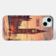 This iPhone 15 case features an illustration representing London skyline. The design has warm and relaxing colours. This case is wonderful for travel enthusiasts and U.K. fans.