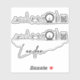 This sticker sheet features a silhouette style line art illustration of the skyline of London.