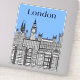 Sticker in a black and white drawing of the London, England Skyline, with blue sky