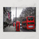 London cityscape with red bus, red telephone box, and of course Union Jack flags.