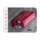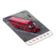 A view from above of one of the famous London red buses printed on a souvenir fridge magnet.
