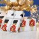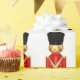 Creative Christmas holiday gift wrap or party decoration featuring vintage London England Buckingham Palace guards.
