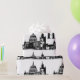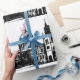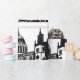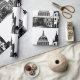Elegant black and white vintage watercolor London, England skyline monogram wrapping paper. Perfect for gift wrapping. Graduation, wedding, birthday.