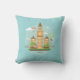 Cute home decor throw pillow featuring illustrative images of London England landmarks such as Big Ben, London Bridge, more.