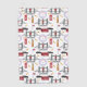 London, England pattern with English elements such as phone booth, double decker bus, London Bridge, the London Ferris Wheel and more tea towel design. Composite design by Holiday Hearts Designs (rights reserved).