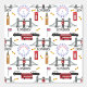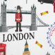 London, England pattern with English elements such as phone booth, double decker bus, London Bridge, the London Ferris Wheel and more. Composite design by Holiday Hearts Designs (rights reserved).