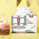 London, England pattern with English elements such as phone booth, double decker bus, London Bridge, the London Ferris Wheel and more tea towel design.