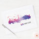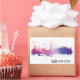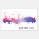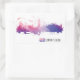 This design features an illustration of the London skyline in watercolor paint splashes.