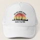 Personalised London vacation hat with a silhouette of the city attractions in front of a cool sunset including the bridge, the London Eye (Millenium Wheel), and the Big Ben clock. Cool United Kingdom trip keepsake souvenir.