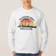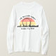 Personalized London vacation long sleeve t-shirt with a silhouette of the city attractions in front of a cool sunset including the bridge, the London Eye (Millenium Wheel), and the Big Ben clock. Cool United Kingdom trip keepsake souvenir gift.