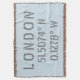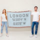 Latitude and longitude coordinates for London, England in grey, urban stencil-style font