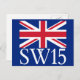 London Postcode SW15 with Union Jack Postcard