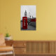 Red telephone box, London black and white looking at Bridge Big Ben and the houses of Parliament by Parliament Square and a Red London transport bus